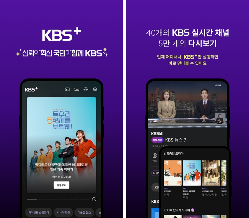 - KBS 전 채널 생방송 제공: KBS1, KBS2, KBS24 등 모두 실시간으로 감상 가능